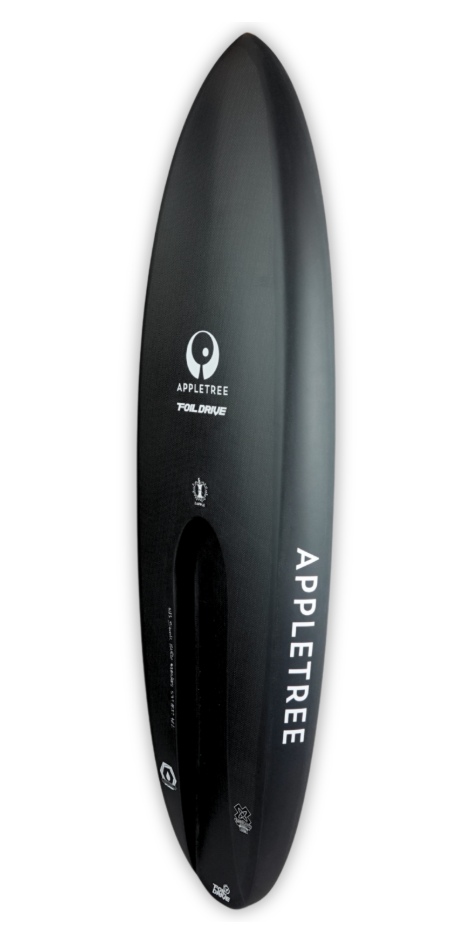 We designed a special nose for the Zapple, acting as a “signal window”. The antenna for the Foil Drive is located in line with the track, to help the signal pass into the board, so make sure the foam strips provided with your Foil Drive kit are packed in there, to avoid signal blocking by water.