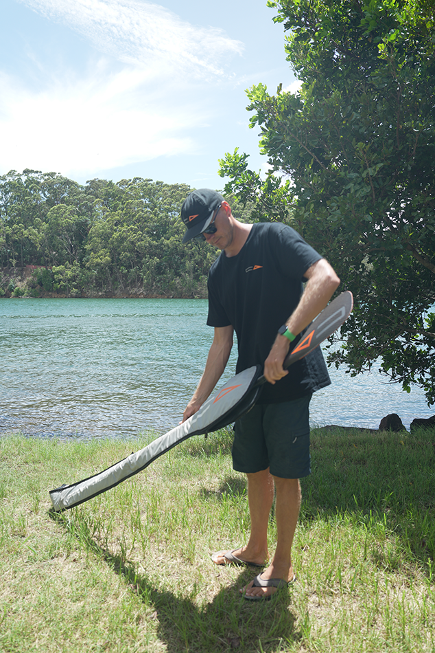 Introducing the Code Foils SUP Paddle Cover, designed for the traveling foiler in mind. This padded cover offers robust protection in a sleek grey finish, complemented by high-quality stitching and durable zippers for lasting use. It's perfectly sized to fit SUP paddles of most lengths and sizes, ensuring your paddle is securely protected wherever your adventures take you.