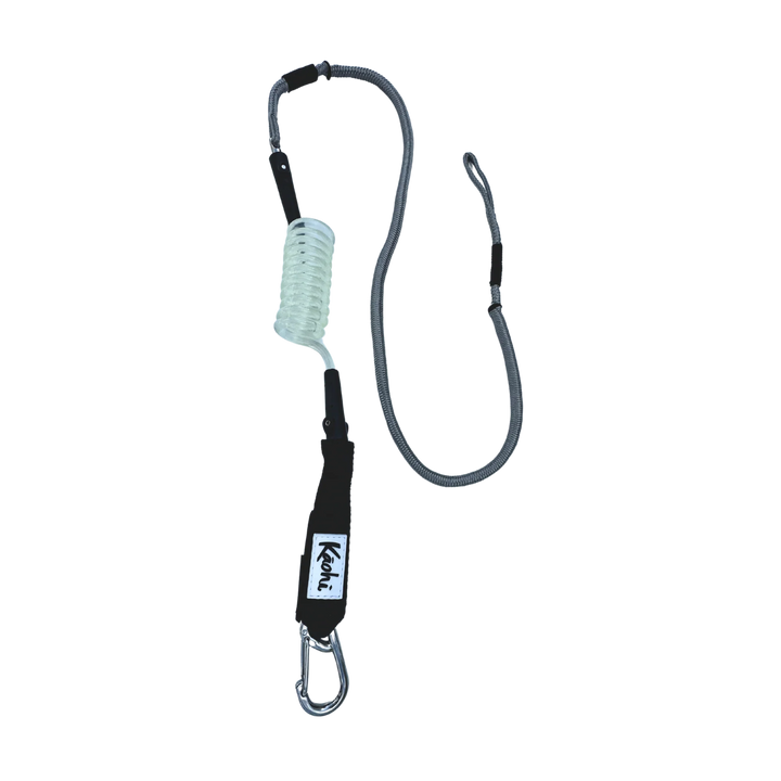 the dyneema-style bungee section gives lightweight length with strength and is silent on the board... no clunking noise when pumping or connecting bumps