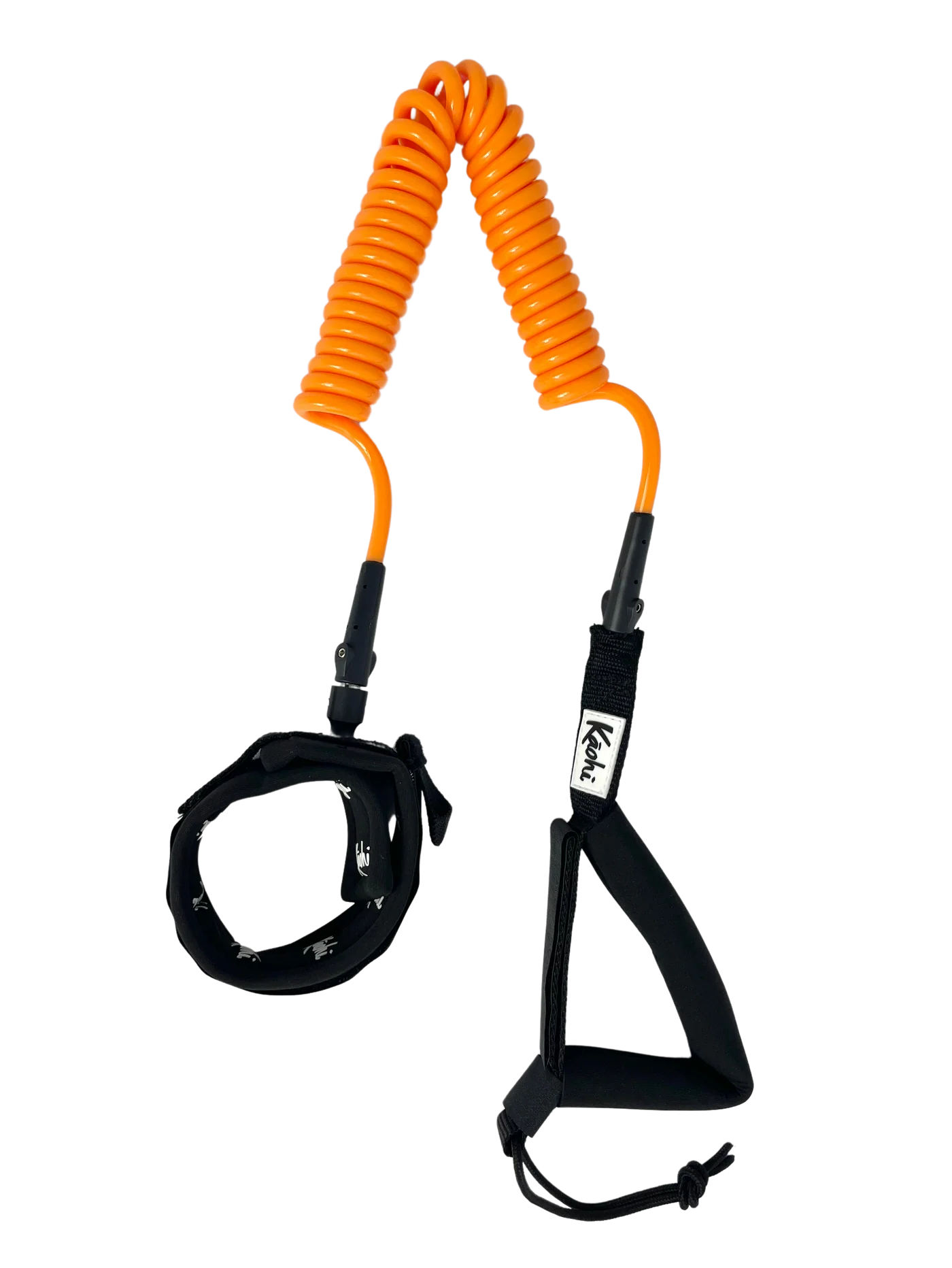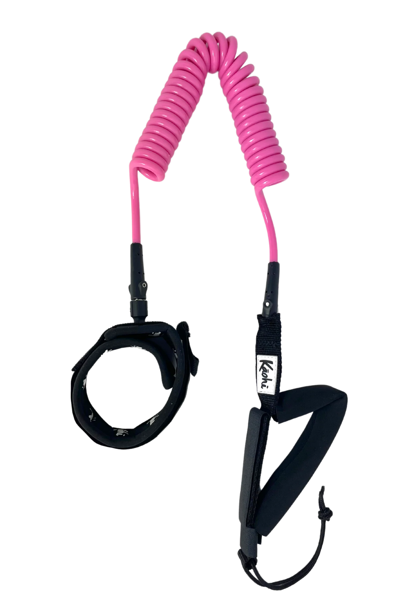 Kāohi Grip Continuous Coil 8 mm Leash is a designed for Foilers, Wing Foilers and SUP surfers that seek out more challenging surf. It’s also ideal for SUP Racing. The Continuous Coil minimizes leash drag, so your surfing and racing experience is more efficient. This 10 foot leash is available in your choice 3 colors: Black, Orange or Pink and with either an Ankle or Calf Cuff.