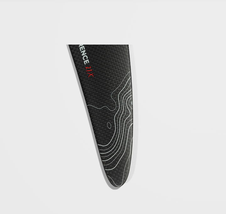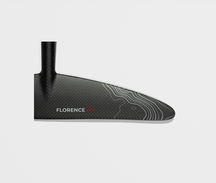 The Florence 21 X mixes traits from the 25Glide, 20Carve, and 21Flow all in the name of making an ultra high performance downwind tail. The result is a tail that Nathan describes as “being covered in dish soap, the glide is psycho”. The medium length fuselage provides just enough stability, while the low angle of incidence provides limitless glide to connect bumps.
