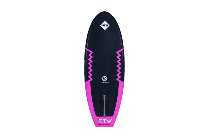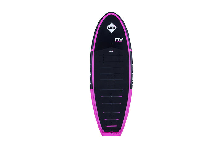 The FTW is the signature model of Brian Finch. The FTW is a low volume, narrow, light weight, highly reactive shape designed to meet the demands of top performance foiling. The convex deck exaggerates heel to toe pressure while the flat bottom and hard rails shear away water on touch downs and bashing the lip and foam, and increasing control. The FTW is a great crossover board, ideal for strapped foiling, surf foiling, wake foiling, and dock starts.